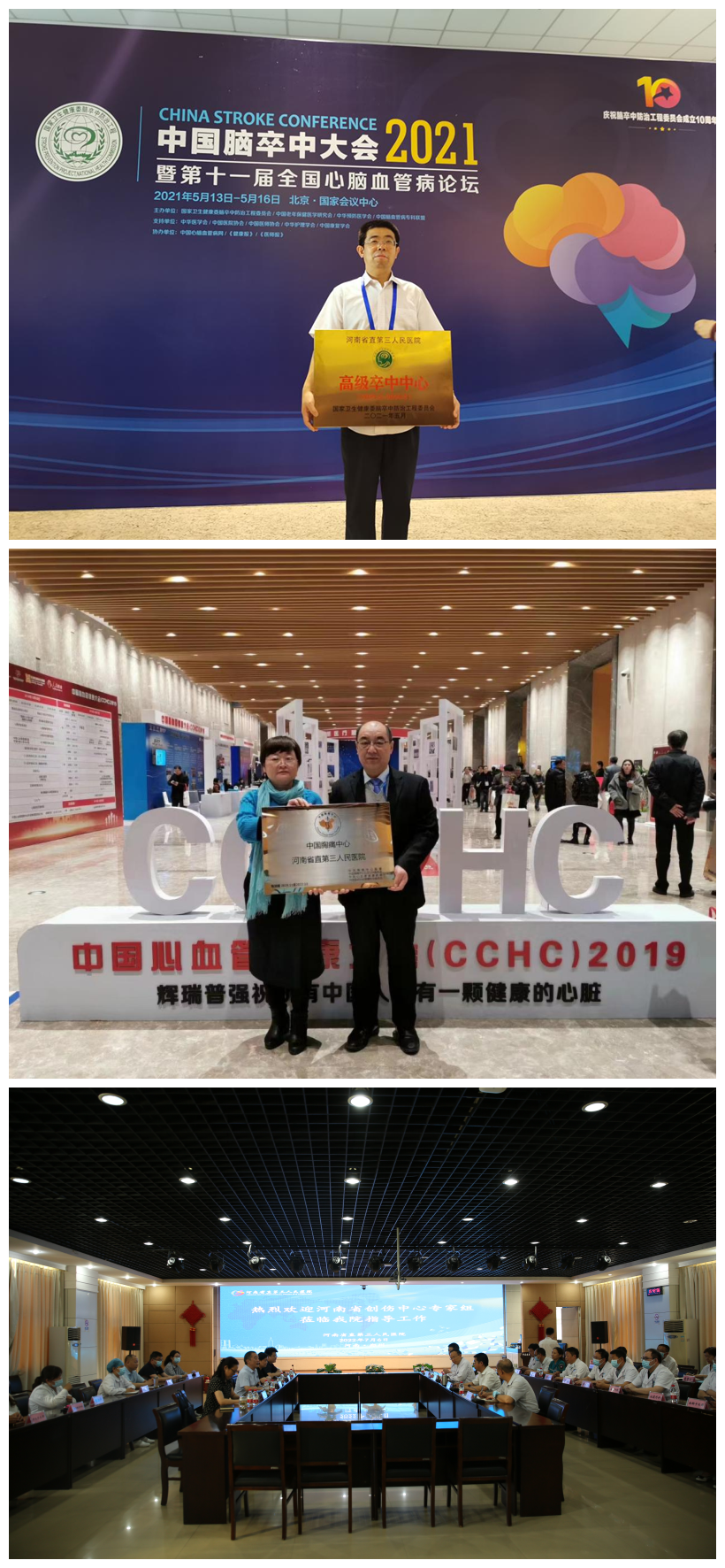 急重症医学中心开展院前急救与院内诊疗无缝对接工作,创伤中心于2019年4月29日通过河南省三级医院创伤中心建设认证,胸痛中心于2019年10月31日完成国家标准版胸痛中心认证,卒中中心于2021年5月16日正式通过国家高级卒中中心认证。