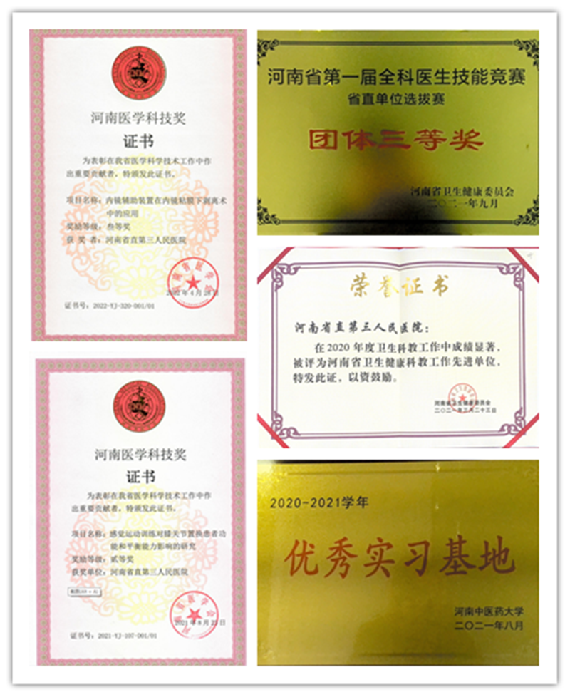 5年来,我院立项河南省医学科技攻关计划联合共建项目近30项,有12个项目获得河南医学科技奖,其中二等奖3项、三等奖9项;6位医师成为河南中医药大学研究生指导教师,并培养硕士研究生;设立我院院级科研项目基金;医学运动训练部积极推进医学运动理论体系的研究不断深入;急诊医学,2016-2020年建设并经评估验收通过了河南省医学重点(培育)学科,2022年我院申报医学重点学科7个;我院承担着河南中医药大学、新乡医学院三全学院、河南医学高等专科学校等十余所学校的临床实习任务。每年医院选派医师到国内医院进修;2018年8月医院通过河南省卫生健康委审批,成为河南省助理全科医生规范化培训基地,2020年被河南省卫健委认定为河南省“卓越全科医生”联合培养试点单位,立项河南省医学教育研究项目8项;荣获“河南省卫生健康科教工作先进单位”,“河南省卫生健康科教工作先进个人”等荣誉;本科全过程教学基地于2018年7月初验收成功,遴选出118名符合要求的理论师资。