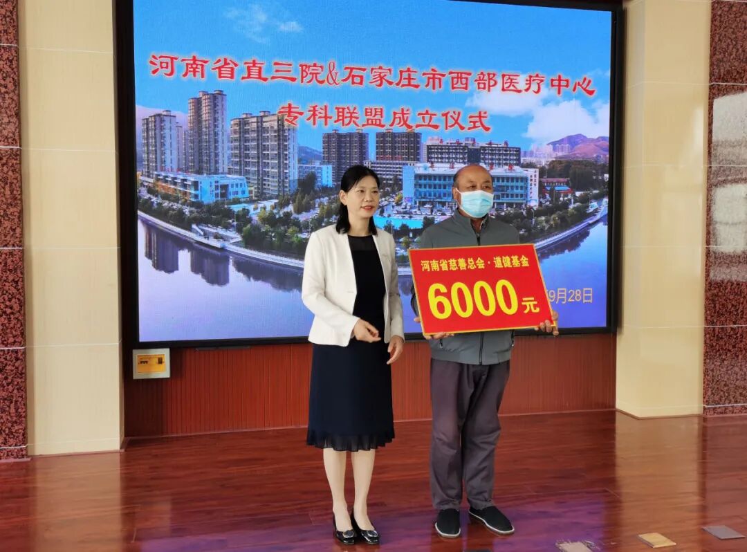 陈主任介绍,为促进人道主义事业发展,解决困难患者就医资金难的局面,按照国家卫生政策,河南省直第三人民医院发起专项公益基金,基金秉承“慈善先行 大道健康”指导思想,宗旨是通过无偿资助,解决困难患者家庭看病难的问题,促进基层医疗事业发展和支持爱心公益活动。我院结合道健基金,大力推动卫生扶贫,开展“医路有帮 助力基层”公益义诊活动,将健康服务送到群众家门口,活动本着“全民大健康”为理念,旨在推进健康中国建设,树立大卫生、大健康观念,把以治病为中心转变为以人民健康为中心,勾画美好健康蓝图。