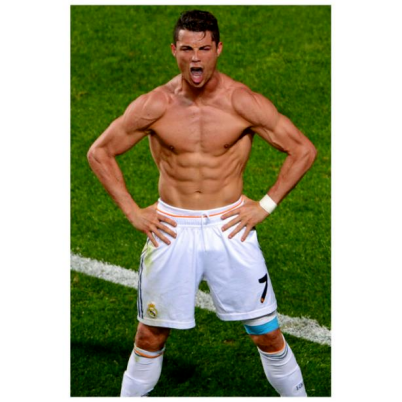 C罗足球王子,在足球场上,他精彩的球技,坚定的眼神,对称的八块腹肌,沟壑分明,肱二头肌青筋暴起,无一不受到球迷的关注,他的身体素质令人惊叹,体检数据身体年纪仅20岁,C罗体脂率仅7%,他的敬业程度和自律程度也受到球迷们的尊重。