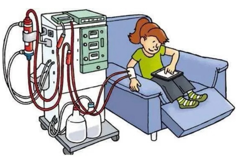 血液透析就是通过一个叫做“透析器”的设备,将患者的血液引出体外,让血液通过一个半透膜,将废物和多余的水分过滤掉,然后再将干净的血液输回体内。这个过程就像是给血液洗个澡,让它变得清澈透明。